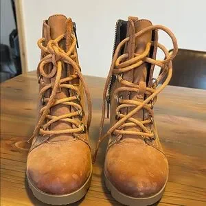 Sorel lace-up leather boots with a wedge heel.