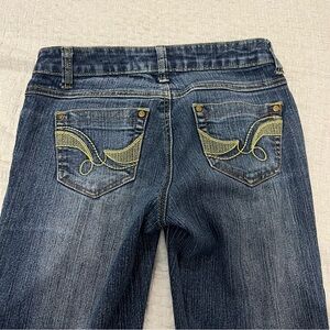 y2k jeans southpole low rise bootcut flare denim embroidered pockets vintage streetwear 2000s baggy skater retro women’s