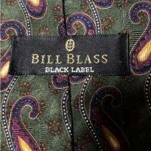 Bill Blass Black Label Green Paisley Necktie 100% Silk