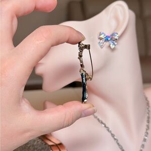 This chic brooch features a stylish fashionista design in gold and black. Perfect for adding a touch of elegance to any outfit.