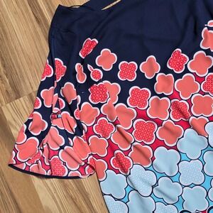 Kaari Blue Shift Dress Blue Coral Quatrefoil Print Women's Size OX Cold Shoulder