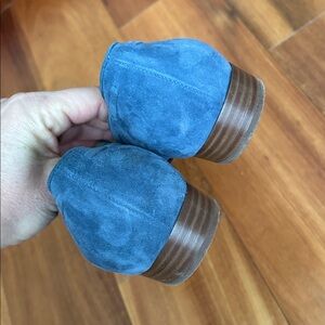 Beautiful blue suede J. Crew flats with bow. Leather lining and suede upper, made in Italy. Great used condition.