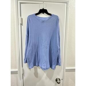 Free People Intimately Blue Waffle Knit Oversized Long Sleeve Tshirt- Size XS
