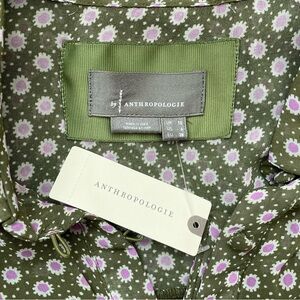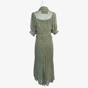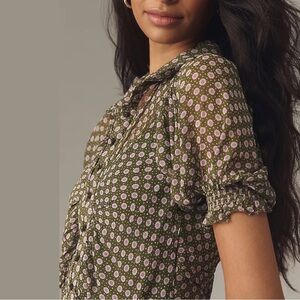 Anthropologie Puff-Sleeve Ruched Mesh Midi Shirt Dress Moss Green 6 NWT