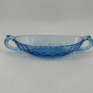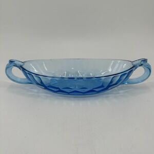 Vintage Blue Pressed Glass Double-Handled Serving Dish Candy/Nut Bowl