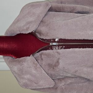 Soft and cozy teddy jacket from Anthropologie. The faux fur is super soft and feels like real fur! Features a zip closure and wide collar and faux leather trim. Slash pockets.