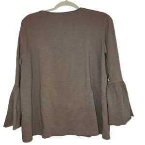 Caite Handmade Taupe Embroidered Bell Sleeve Top Size XL Stretch Boho Babydoll