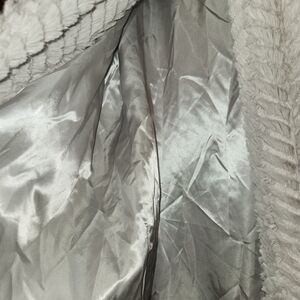 Carmen Marc Valvo Chevron Gray Faux Fur Coat One Snap Front Size S Soft Lined