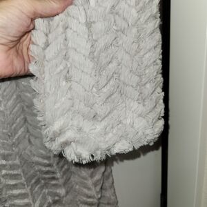 Carmen Marc Valvo Chevron Gray Faux Fur Coat with a single snap front closure Size S. Very soft and cozy with side seam pockets. Fully lined with satin frabic. Luxurious, soft, fuzzy, fluffy faux fur. A great way to elevate any outfit!