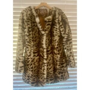 Southern Fried Chics Faux Fur Leopard Print Button Up Coat Size Small