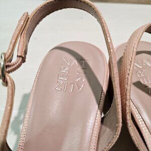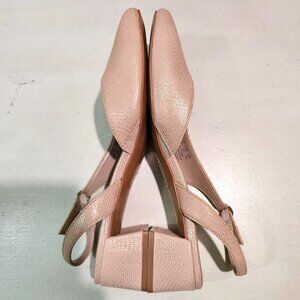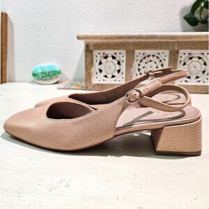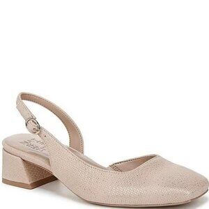 Naturalizer Womens Sz 10M Metallic Leather Slingback Beige Pumps Low Heels Dress Shoes Work Casual
