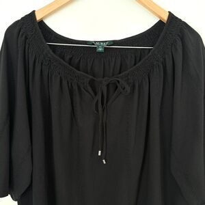 Lauren Ralph Lauren Black Peasant Blouse Tie Neck Size 3X Boho Cottagecore Top