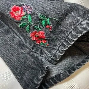 Bugle Boy Vintage Black Rose Embroidered Jeans | Size 16