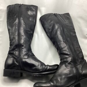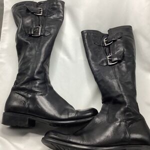 Clarks Black Leather Knee High Boots Buckle Zip Women Size 7.5 M