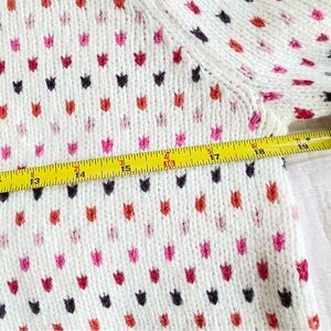 NEW Marine Layer Pink Alma Puff Sleeve Pink Red Heart Print Ivory Sweater Size M