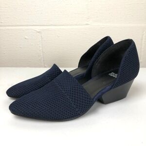 Eileen Fisher Womens Hallo Knit D'Orsay Pump Shoes 7.5 Blue Slip On Wedge Heel