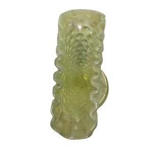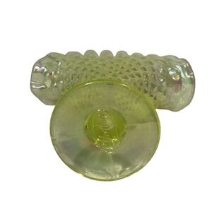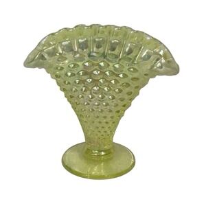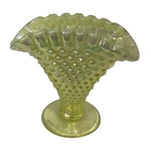 Vintage Fenton Yellow Topaz Opalescent Hobnail Mini Fan Vase Vaseline Uranium