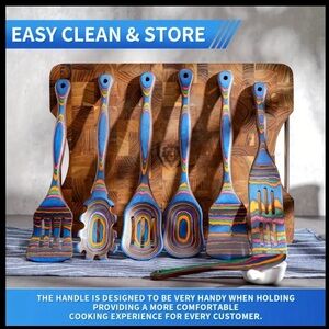 Strikingly unique 7-Piece Wooden Spoon & Spatula Utensil Cooking Set.