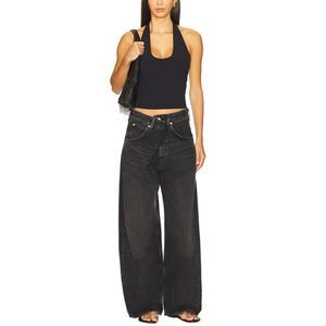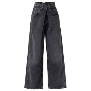 When it comes to denim trends, AGOLDE sets the pace we predict these 'Vana' jeans will become just as popular as the brand's iconic 'V-Waist' styles. They have a draped front that creates a cool pleated effect and relaxed, wide legs. Details: Zip fly with button closure, 5-pocket silhouette. Tonal stitching, silver-tone hardware, belt loops. Faded black wash, folded design at front. Wide-leg silhouette. Non-stretch denim cotton with a soft finish. Approx: Inseam: 31.5" - Leg opening: 23" - High rise: 13.5"
