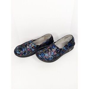 Alegria Shoes Leather SlipOn Loafer Debra Metallic Floral Comfort Nurse 39/9-9.5