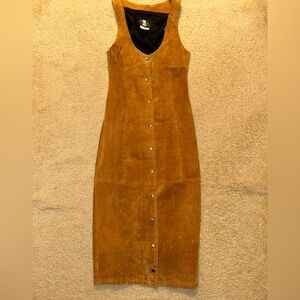This vintage suede tan sleeveless dress is perfect for any occasion. Its classic design and comfortable fit make it a wardrobe essential.