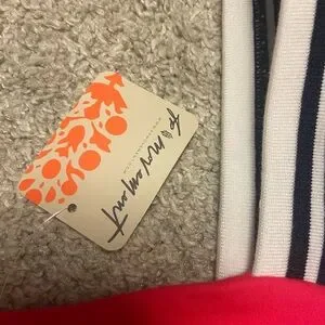Electric red sunset crop- white, blue, black ruffle straps. Brand new.