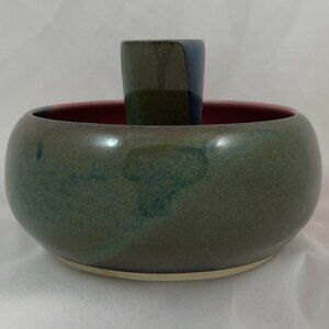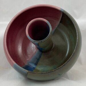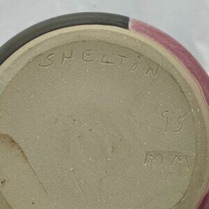 Virginia Shelton is known among regional pottery collectors for her warm, functional stoneware and small‑batch decorative pieces throughout the 1990s. Her work often features clean forms, subtle glazing, and a focus on everyday usability — qualities reflected in this candlestick’s balanced proportions and thoughtful craftsmanship.
