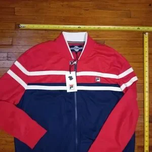Stylish and comfortable, this Fila men's jacket features a striking red and blue design. Perfect for casual outings, it combines fashion with functionality.