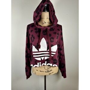 Adidas Big logo Burgundy/Black Leopard print cropped oversized Hoodie S