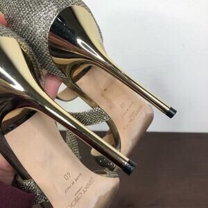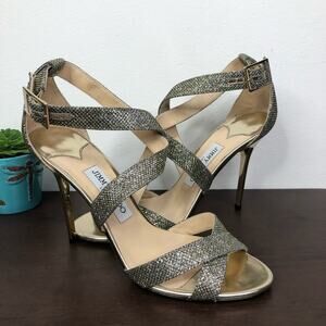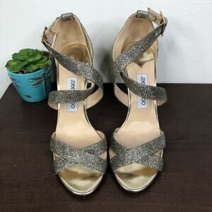Jimmy Choo Lottie Lag Light Bronze Strappy Glitter Heels Women's Size EU40/US 10
