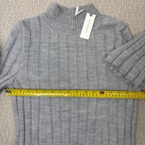 Anthropologie Ribbed Mock Neck Sweater Dress, Grey, Size Medium Flare Sleeve NWT