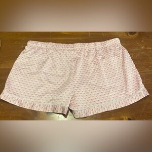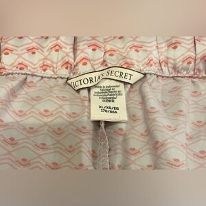 Victoria’s Secret pink patterned silky/satiny tie front elastic sleep shorts; XL