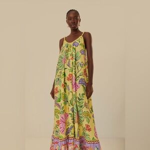 Farm Rio dress, maxi dress, floral maxi dress, yellow dress, summer dress, resort dress, vacation dress, boho dress, statement dress, sleeveless maxi, Brazilian print dress, new with tags dress