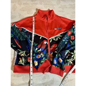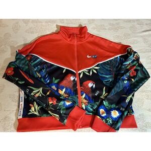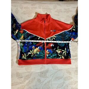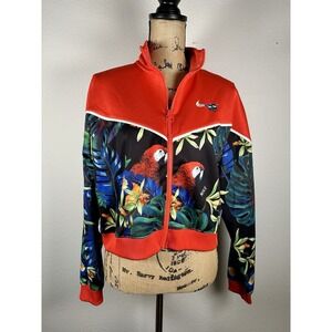 Nike Sportswear Jacket Womens Large Red Tropical Full Zip Lightweight Cropped