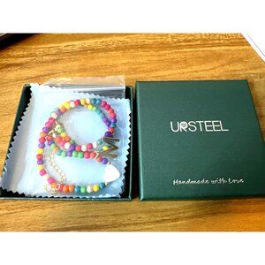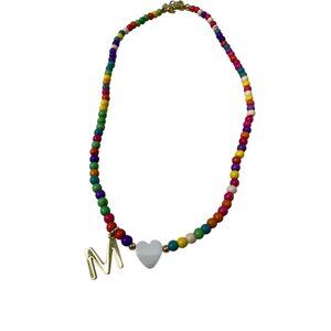 Natural Stone Initial Necklace "M" 16" Colorful Woman Teen Girls NEW IN BOX