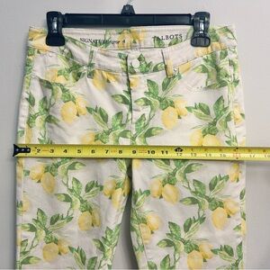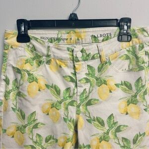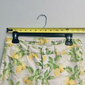 These Talbots signature crop pants are absolutely adorable! They have a white background with a cute lemon design all over. The fabric feels like a light denim. Please see photos for approximate measurements. They are size 4 and in excellent pre-owned condition. A wardrobe must-have! 🍋