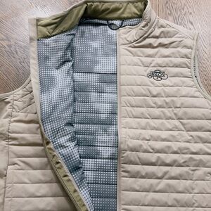Stay warm and stylish with this cream quilted vest. Perfect for layering, it offers comfort and elegance for any occasion or your next round of Golf!