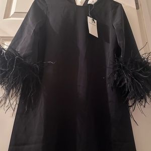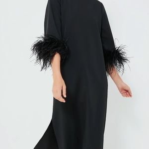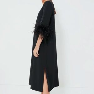 An event worthy update to our favorite easy wearing silhouette, the Black Feather Jamie Dress brings the fun without compromising its classic elegance. This LBD with feathered sleeve cuffs adds a fun and glamorous feel to create a party-ready style that will take you from al fresco soirees to dinner celebrations with the gals with ease. Bonus: this is a no-spanx-required dress!
