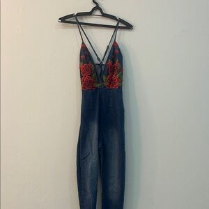 Embroidered Floral Denim Jumpsuit