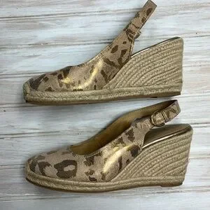 Naturalizer “Pearl” Leopard Print Slingback Espadrille Wedges Sz 8