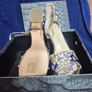 AZALEA WANG SAPPHIRE BLUE SATIN JEWELED PLATFORM SANDALS