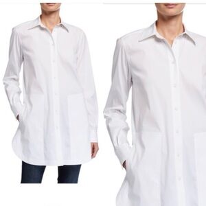 Lafayette 148 New York Wilkes Italian Sculpted Cotton Button Up Shirt Tunic