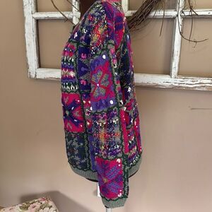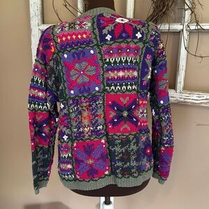 Vintage chunky knit cardigan sweater womens size colorblock 90’s y2k petite medi