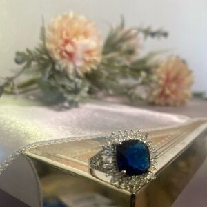 Gorgeous Blue Cubic Zirconia Simulated Blue Sapphire Ring Women in Sil…