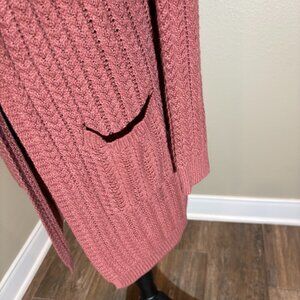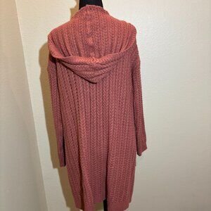 Pink Rose Orange Rust Open Front Hooded Sweater Duster Cardigan