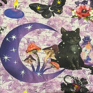 Mystical witchy Cat Patterned fabric - 45 inches wide, 4 yards, cotton, NWOT