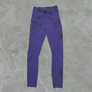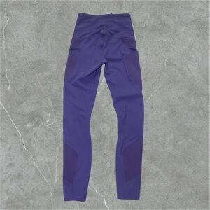 Lululemon purple leggings designed with contour seams that enhance and shape the legs and glutes for a flattering fit. Supportive, high-waisted style with multiple pockets for phone, keys, or cards — great for workouts, walking, or everyday wear.