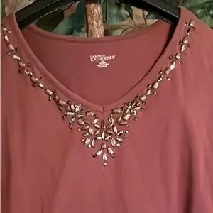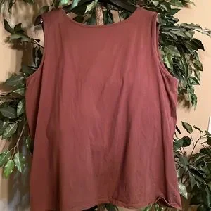 LIZ & ME for CATHERINES BROWN BEADED NECK SLEEVELESS TEE.BROWN IN PLUS SZ 3X EUC