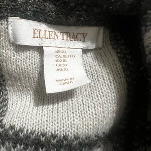 Stay cozy and stylish with this Ellen Tracy sweater, featuring a sophisticated cowl neck and turtleneck design. The elegant gray and white color scheme adds a touch of class, while the relaxed fit ensures comfort and warmth. Perfect for chilly days, this sweater is a must-have for your wardrobe. Preowned without any stains or tears.