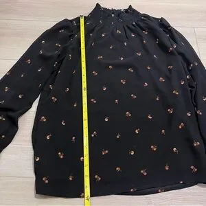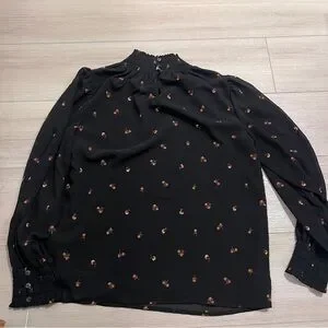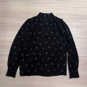 Pretty Madewell smocked mockneck top with a relaxed fit. Features smocked neckline and cuffs, perfect for casual or dressy outfits.